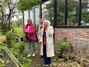 Dit bleek een juiste beslissing want het grootste gedeelte van de ochtend bleef het droog. Om de weergoden niet teveel uit te dagen gaf Martien nog vóór de koffie een rondleiding door haar prachtige herfsttuin.