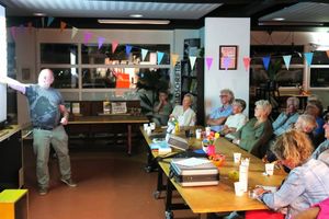 Deze avond hebben we geleerd dat bijen een bijzonder interessant en slim volk is. Johan vertelde met veel passie zijn verhaal en iedereen hing aan zijn lippen, wat ook bleek uit de vele vragen die werden gesteld. Aan het einde van de avond was er gelegenheid om heerlijke honing kopen: bloemenhoning, heidehoningzomerhoning of Propolis tinctuur wat van de bijen “metselspecie” wordt gemaakt en waaraan een bacterie dodende werking wordt toegeschreven.