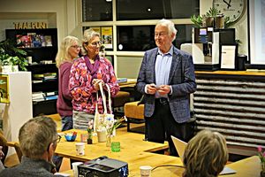 Natuurlijk ontbrak in de pauze de koffie met versnapering niet en werden aan het einde van de avond een aantal voorjaarsstukjes verloot. Gezien de vragen die zijn gesteld en de aantekeningen die zijn gemaakt zullen vele opgedane ideeën vast en zeker later in eigen tuin worden gerealiseerd.